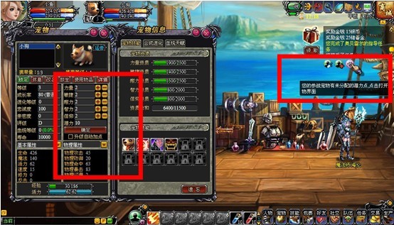 宠物的潜力点分配与人物一样,也是通过“+”、“-”按钮可自由分配潜力点,分配完成后,点击“确定”按钮。